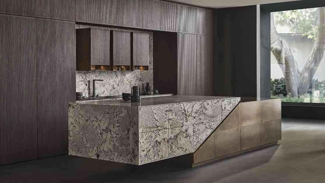 – Colours/finishes: selected natural stones, metals, and veneers