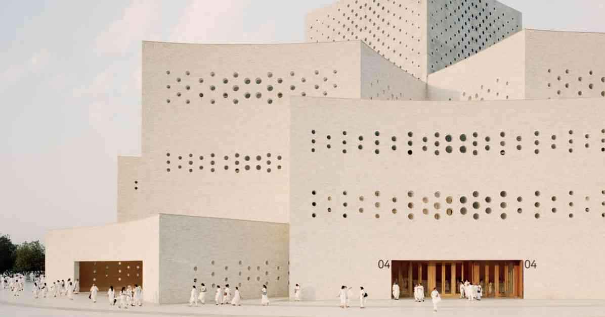 One of the most striking features of the Raj Sabhagruh is its unique design approach. By eschewing traditional columns in favor of interconnected concrete walls, the architects have created a space that allows natural light to filter through, enhancing the building’s sense of openness and expansiveness. The exterior, clad in over 800,000 hand-cut marble bricks sourced from nearby Rajasthan, exudes a luminous quality that is both striking and environmentally conscious.